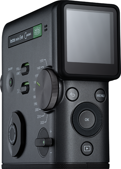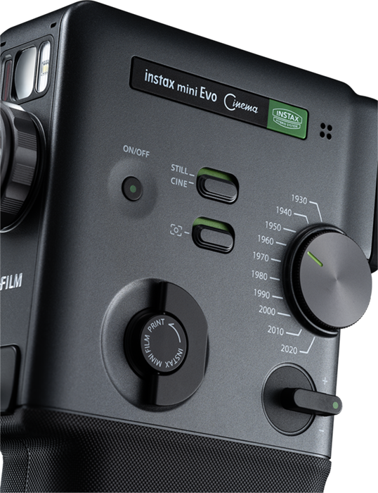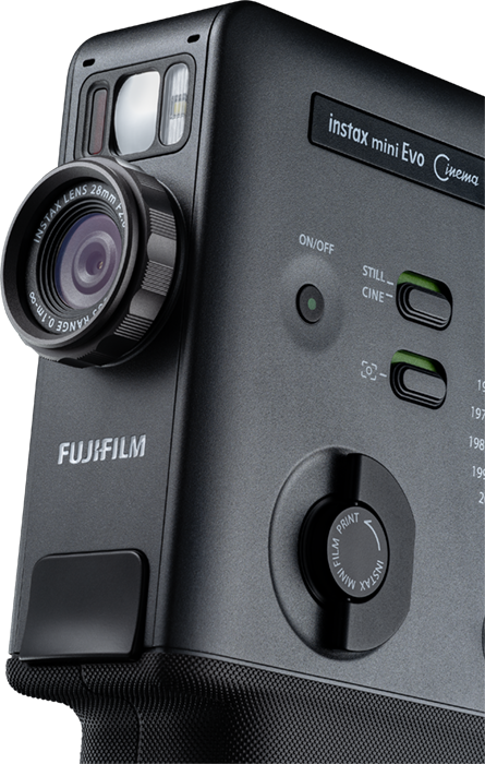 Die instax mini Evo Cinema™ Hybrid Sofortbildkamera – Sofortbildkamera, Smartphonedrucker UND Videokamera in einem.